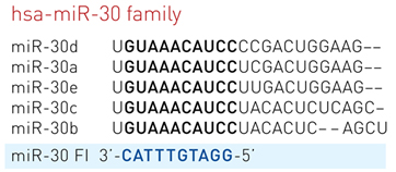 for the miR-30 family (in bold). In this particular case it was possible to design one short complimentary inhibitor, miR-30