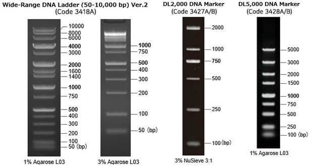* Wide-Range DNA Ladder (50-10,000 bp) Ver.2 (Code 3418A)´Â Wide-Range DNA Ladder (50-10,000 bp) (Code 3415A, Á¾¸Å)ÀÇ ´ëüǰÀÔ´Ï´Ù.