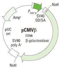- pCMV-LacZ´Â human cytomegalovirus immediate early promoter (PCMV IE)·Î beta-galactosidase¸¦ °í¹ßÇöÇÏ´Â mammalian reporter vector·Î reference³ª control plasmid·Î ÀÌ¿ëÇÒ ¼ö ÀÖ´Ù. Beta-galactosidase Ȱ¼ºÀº Luminescent Beta-Gal Detection Kit IIÀ¸·Î °ËÃâ ÇÒ ¼ö ÀÖ´Ù.
