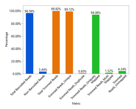 Library sequencingÀº NextSeq 500/550 High Output Kit (150 cycles) (read length 2 x 75 bp)À» »ç¿ëÇÏ¿©, PhiX spike in 18.81%·Î ½Ç½ÃÇÏ¿´´Ù. Read Áß 96.56%°¡ ¹ÙÄÚµå ºÎÂø¿¡ ¼º°øÇÏ¿´°í, ¹ÙÄڵ尡 ºÎÂøµÈ ´ÜÀÏ ¼¼Æ÷ÀÇ °æ¿ì, adaptor trimming ÈÄ ¹ÙÄڵ尡 ºÎÂøµÈ read Áß 99.12%°¡ unique read¿´À¸¸ç, ¹ÙÄڵ尡 ºÎÂøµÈ readÀÇ 94.06%°¡ hg38 reference genome °íÀ¯ÇÏ°Ô ¸ÅÇεǾúÀ½À» È®ÀÎÇÏ¿´´Ù.